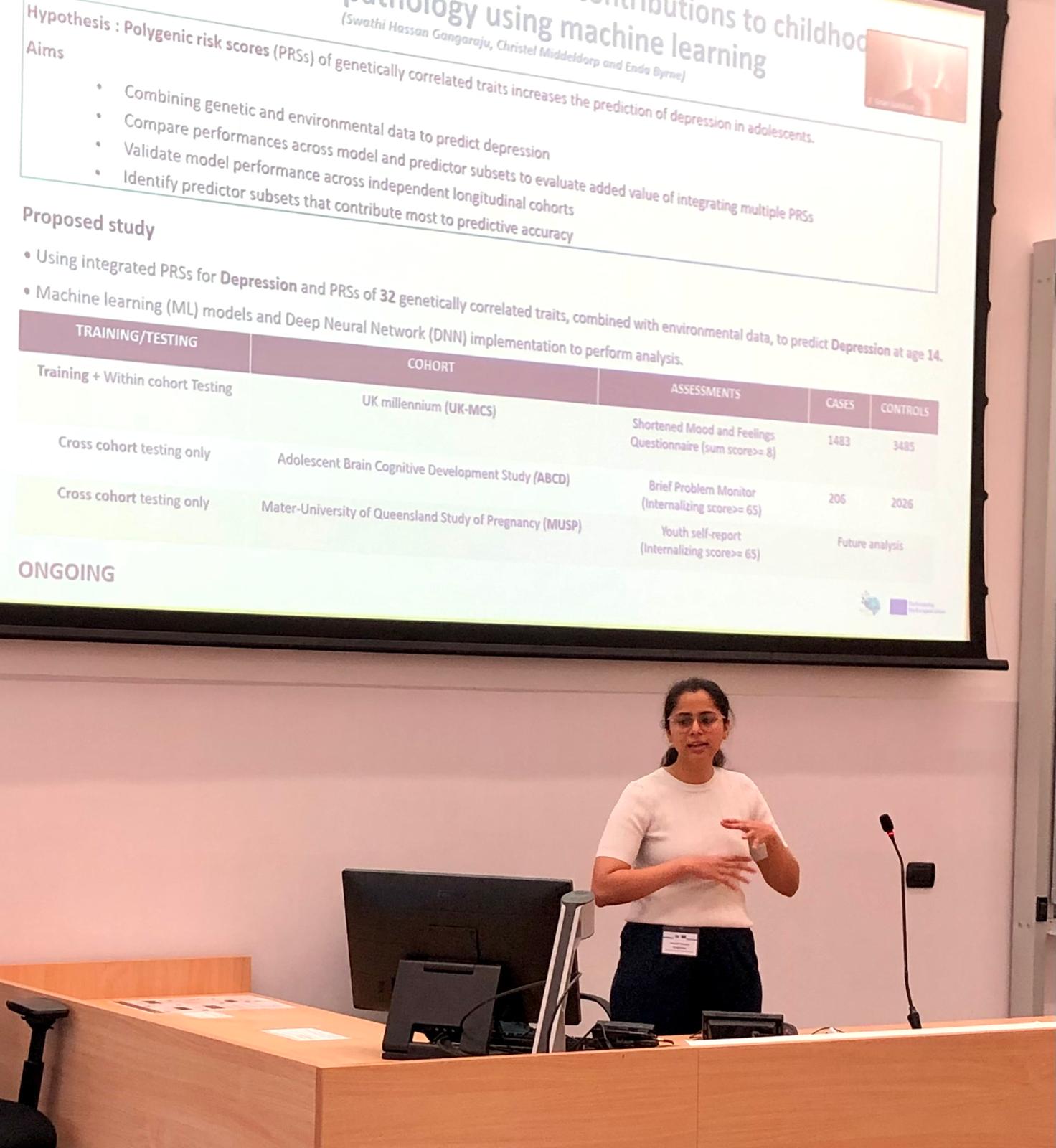 As part of my PhD research at the Child Health Research Centre, University of Queensland, I work with studies that follow large groups of children from birth over many years (so called longitudinal birth and child cohorts). I look at both their genetics, especially something called “polygenic risk scores”- which estimate a genetic liability of an individual for a particular trait and their environmental experiences, such as family, lifestyle, and early-life exposures. Wherein I combine these polygenic risk scores and environmental factors and apply machine learning (ML) techniques (Artificial intelligence models) to identify early predictors of mental health outcomes. This research aligns closely with ongoing work at Amsterdam UMC, where researchers also use longitudinal cohort data to develop predictive models incorporating genetic and biological markers.